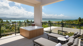 Zemi Miches Punta Cana sits about 90 minutes from Punta Cana International Airport on a quiet, untouched stretch of coastline surrounded by greenery and mountain views. The resort’s design leans into natural textures, modern architecture, and a soothing palette that highlights its beachfront setting.