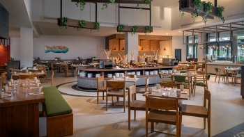 Guacete serves as a dynamic food hall with multiple stations, ensuring guests have diverse options throughout the day.